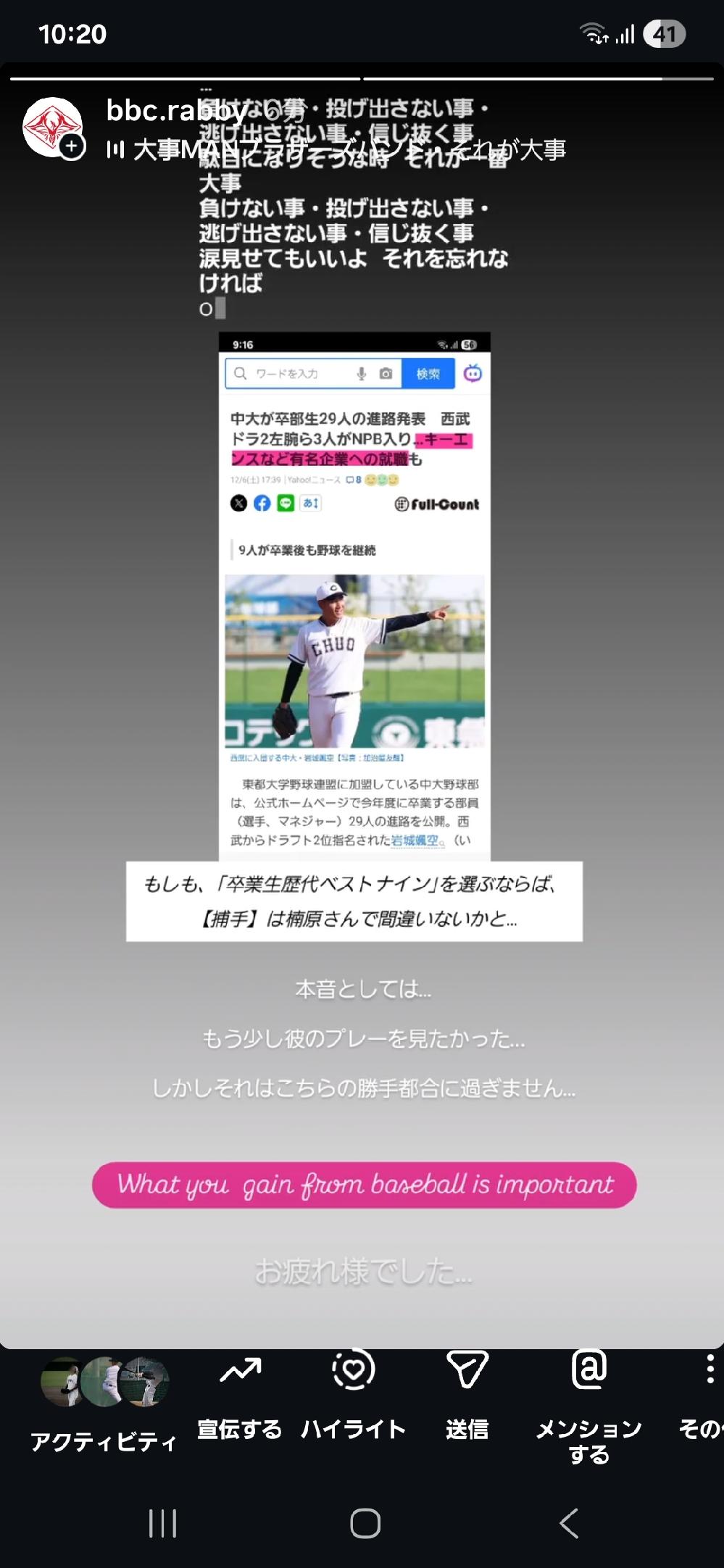 昨年、「自分はプロにはなれません、野球に見切りをつけます。今年であがります。」