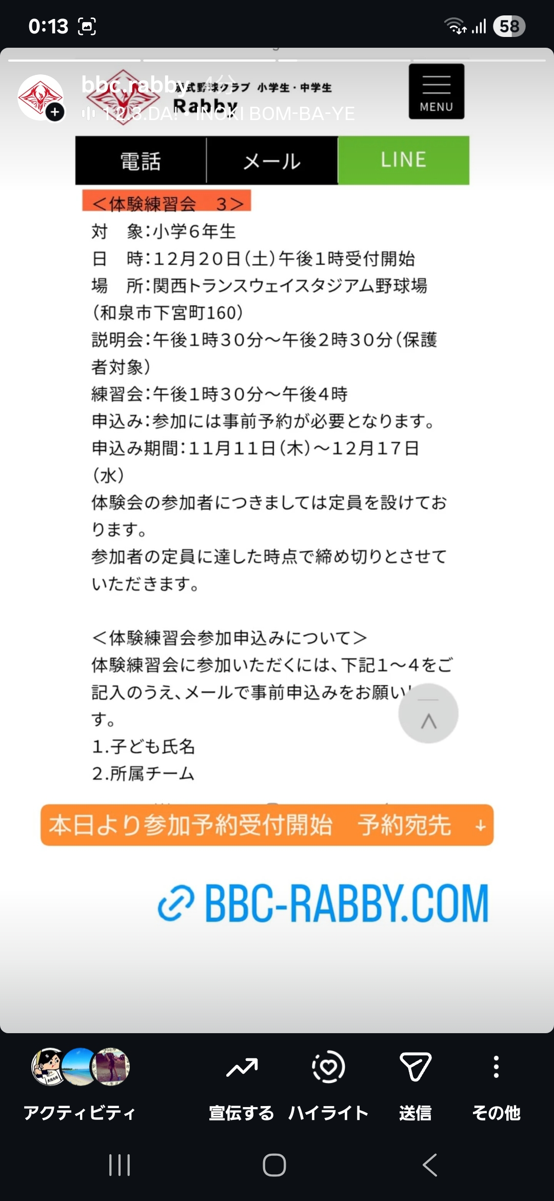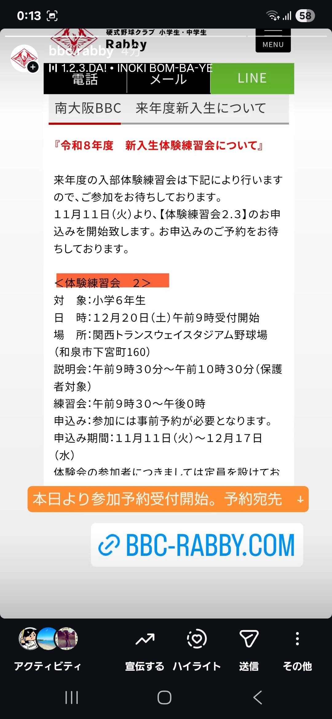 ※南大阪BBCの来年度新入生体験会の日程につきしては、